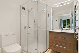 The primary residence, 7 The Dunes has 294m2 floor area spread over two levels and boasts three spacious bedrooms and two well-appointed bathrooms. Sleek and elegant, the kitchen features top-of-the-line appliances, plus a large scullery. There are two lounges, one downstairs with excellent indoor / outdoor flow and an upstairs entertainment room with balcony, bar and separate toilet. The supersized master bedroom enjoys a separate balcony, walk in robe and ensuite with automatic skylight.